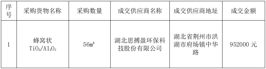 山西煤炭化學研究所蜂窩狀TiO2/Al2O3采購項目采購結果公告