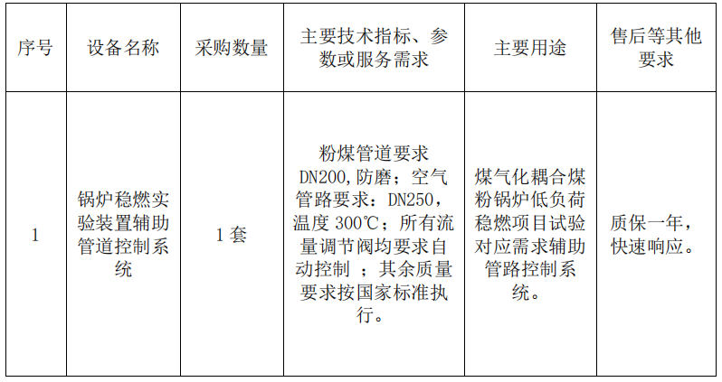 中國科學院山西煤炭化學研究所“鍋爐穩(wěn)燃實驗裝置輔助管道控制系統”采購公告