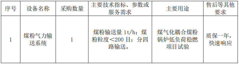 中國科學(xué)院山西煤炭化學(xué)研究所“煤粉氣力輸送系統(tǒng)”采購項目采購公告