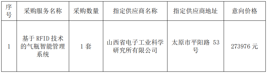 關于山西煤化所工作區“氣瓶智能管理系統”申請獨家采購征求意見的公示