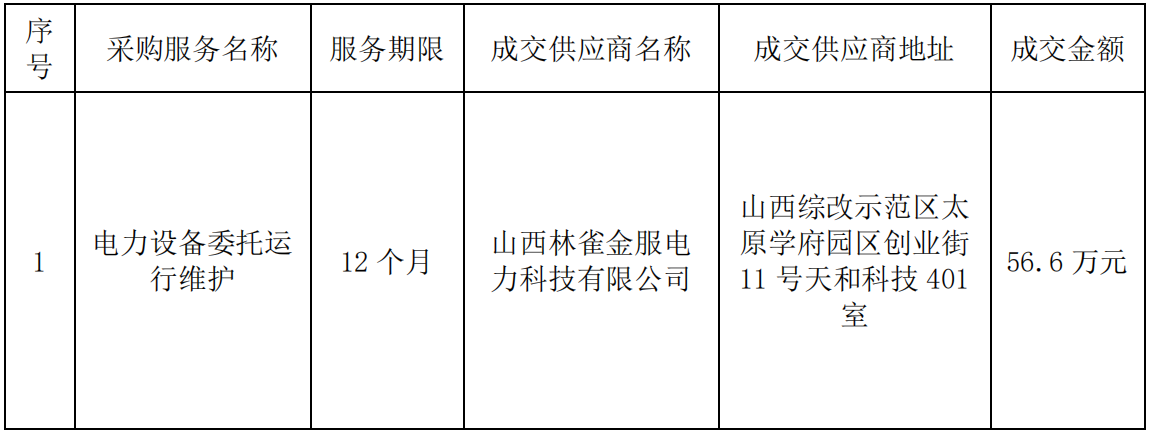 中國科學院山西煤炭化學研究所電力設備委托運行維護詢比采購項目采購結果公告