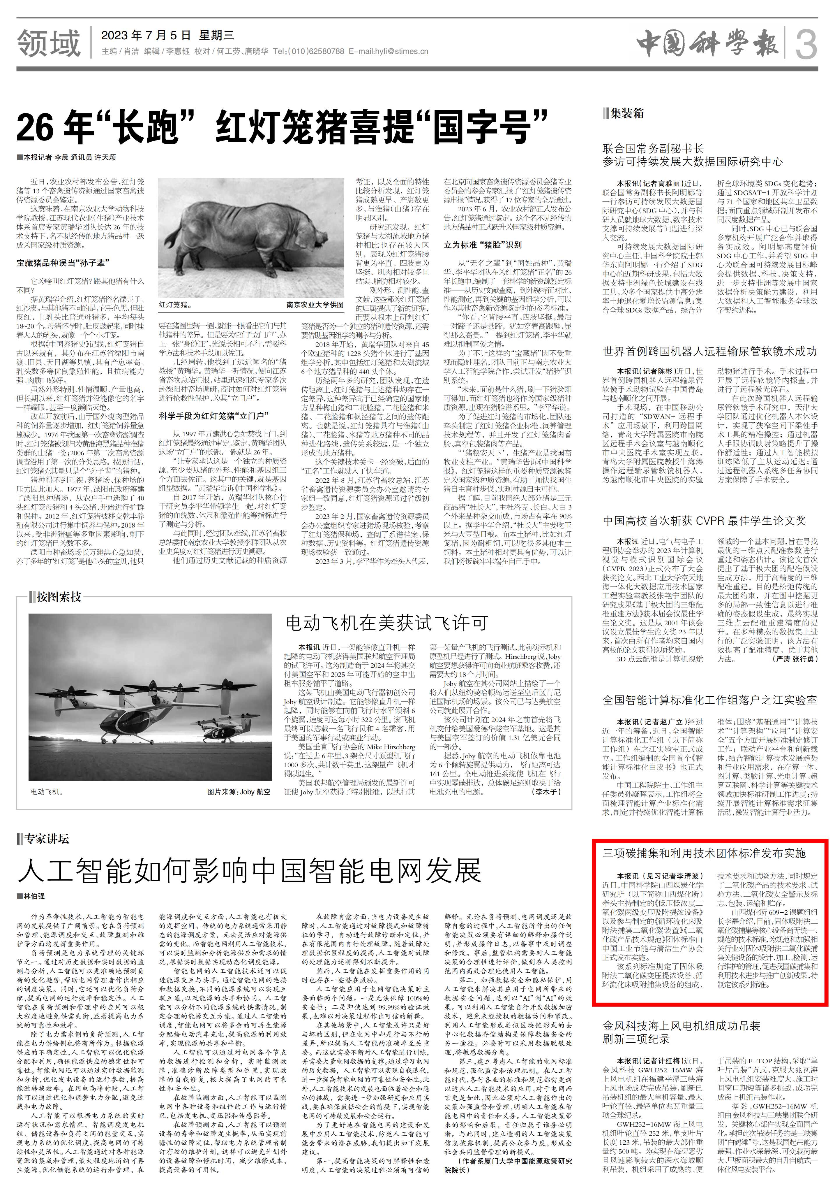 【中國科學報】三項碳捕集和利用技術團體標準發布實施