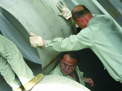 2006年4月23日,周日,原絲工程化試驗線迎來管道注水冷試車的節點。然而,晚上11點多,安裝工作負責人突然發現水灌不進去。大半夜,安裝工作負責人急得直掉眼淚。此時,距離安裝成線的最后期限只剩下不到24小時。最后,經過20個小時的查探和處理,4月24日晚上10點,問題終于得到解決。