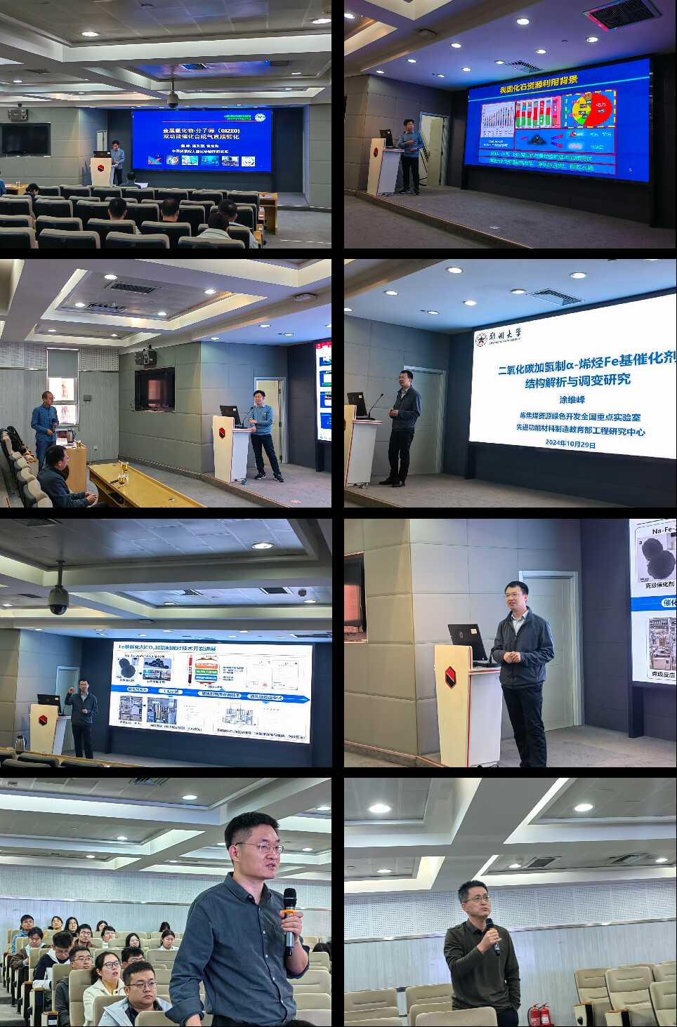 10月29日,應煤炭高效低碳利用全國重點實驗室王森副研究員邀請,中國科學院大連化學物理研究所焦峰研究員、鄭州大學涂維峰教授來實驗室訪問交流,并分別作題為“金屬氧化物-分子篩(OXZEO)雙功能催化合成氣直接轉化”“CO2加氫制α-烯烴Fe基催化劑結構解析與調變研究”的學術報告,報告會由王森主持。