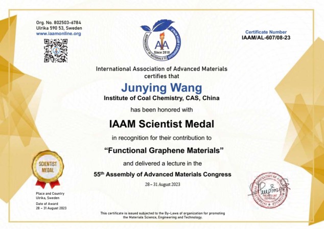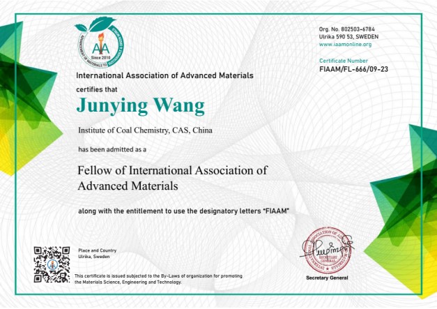 山西煤化所王俊英副研究員獲國際先進材料協會科學家獎章并當選會士
