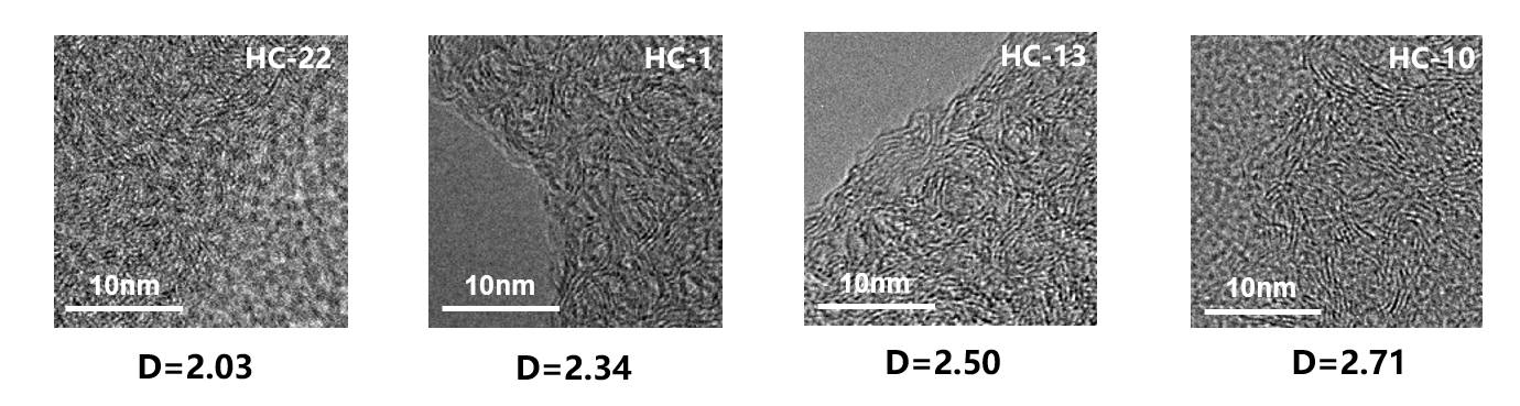 該系列研究工作結合多尺度結構分析和數據驅動方法,成功挖掘并驗證了分形維數作為硬炭微結構無序度指標的有效性,提升了對炭材料結構-性能關系的理解,對于推動鈉離子電池硬炭負極材料的可控設計具有重要指導意義。