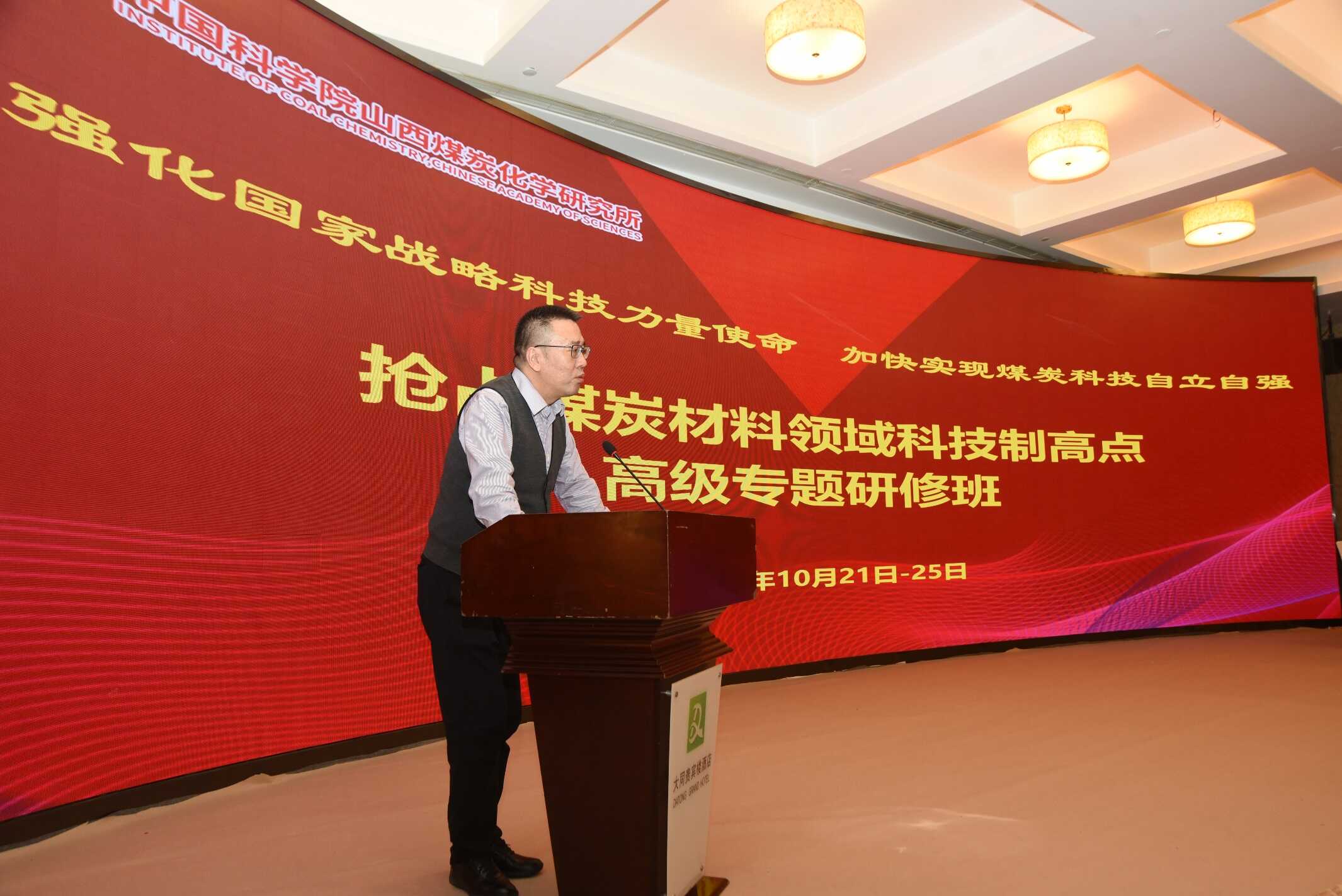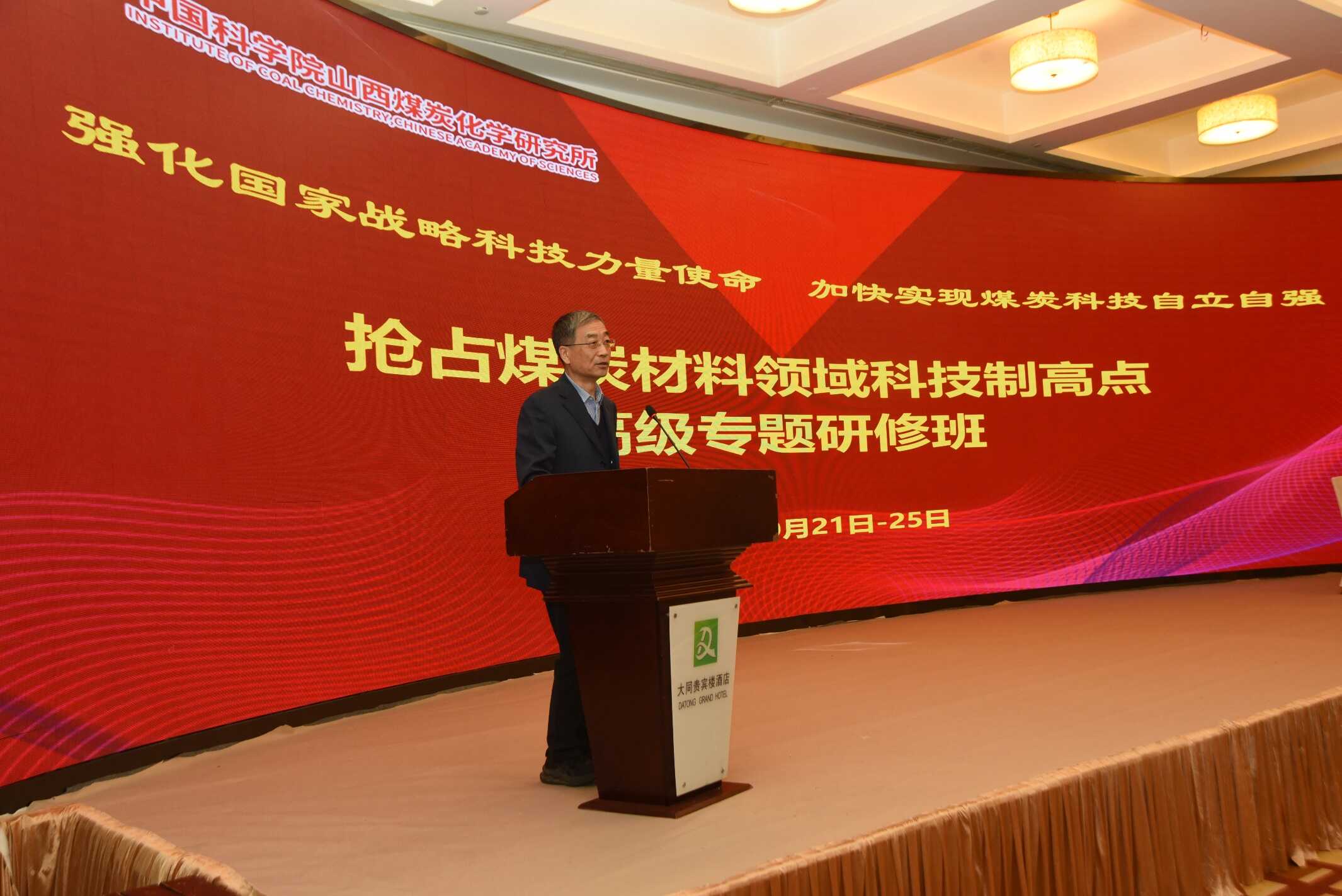 高級(jí)研修班的主題是:以加快搶占煤炭材料領(lǐng)域科技制高點(diǎn)為核心任務(wù),學(xué)習(xí)研討“煤”與“炭”領(lǐng)域關(guān)鍵核心問題,探索科技、人才體制機(jī)制改革舉措,推動(dòng)關(guān)鍵性、原創(chuàng)性、引領(lǐng)性重大科技成果產(chǎn)出。主要培訓(xùn)對(duì)象為能源、材料領(lǐng)域的科研骨干人才、高校教師以及企業(yè)專家。中國兵器工業(yè)第二〇四研究所中國工程院院士呂劍,浙江工業(yè)大學(xué)加拿大工程院院士李小年,新疆大學(xué)黨委副書記、校長姚強(qiáng),清華大學(xué)深圳研究生院院長康飛宇,山西省社會(huì)科學(xué)院歷史研究所所長董永剛,北京科學(xué)智能研究院副院長李鑫宇,中國科學(xué)院大學(xué)王建國研究員,北京化工大學(xué)劉振宇教授、宋懷河教授,中國科學(xué)院過程工程研究所朱廷鈺研究員,中國科學(xué)院自然科學(xué)史研究所陳樸研究員,中國科學(xué)院西安分院黨建工作處處長楊文正、科技合作處副處長宋宗璽,山西煤化所所長房倚天、副所長樊衛(wèi)斌,以及所內(nèi)外科研機(jī)構(gòu)、高等院校、企事業(yè)單位等100余位專家、學(xué)者、科研骨干人員參加了研修班。大同市副市長溫旭斌,大同市科技局黨組書記戴陶及相關(guān)部門代表出席高級(jí)專題研修班。高級(jí)專題研修班由樊衛(wèi)斌主持。