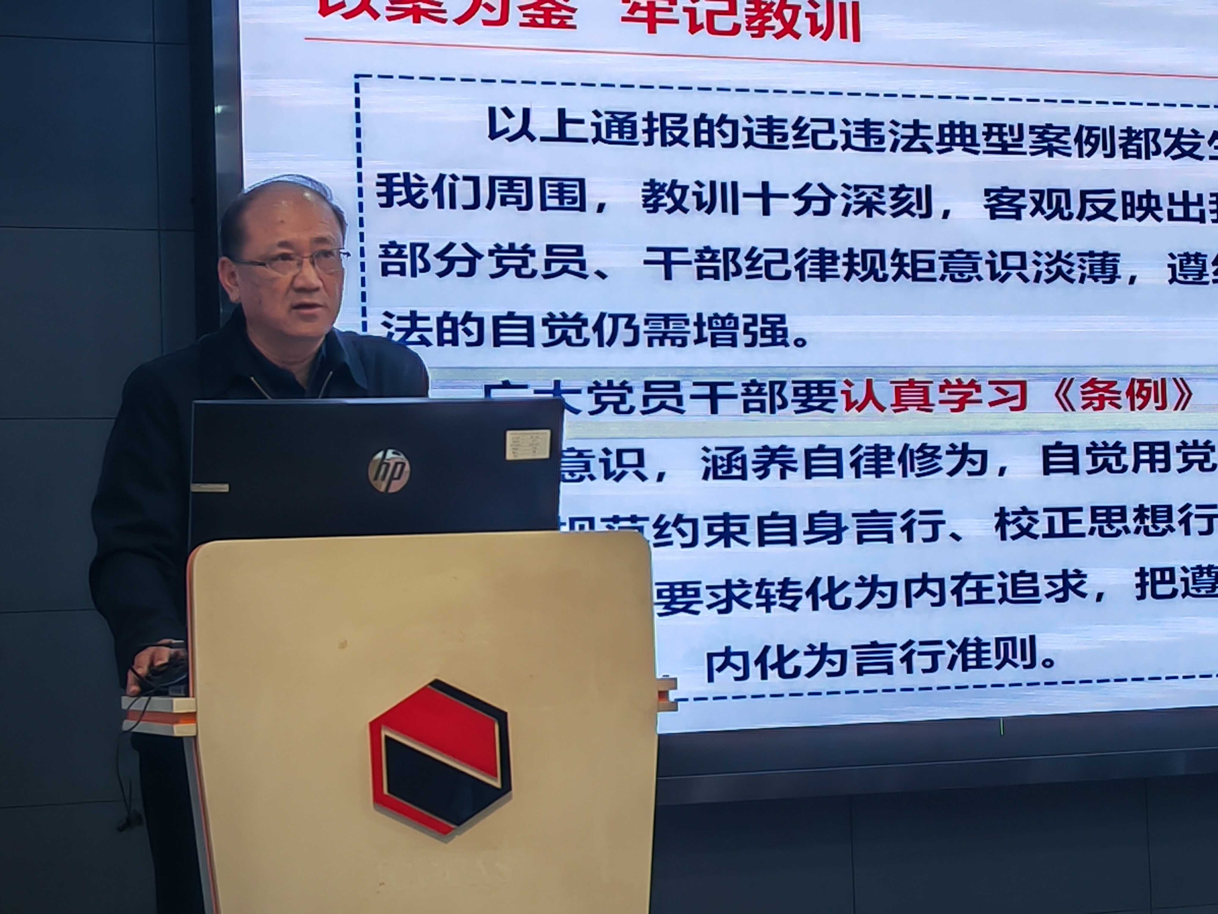 會上,房倚天作了題為《以案明紀筑牢遵規守紀思想防線 廉潔自律共守護煤化所創新發展》的廉政警示教育報告,全面闡述了黨的十八大以來黨風廉政建設和反腐敗工作總體形勢,通報了我院黨員干部違紀違規典型案例和內部審計中發現的典型共性問題,重點對深入開展“深化黨紀學習教育,嚴明崗位工作紀律”專項工作、推動各項重點工作任務落實落地進行再部署、再動員。他強調,所長、黨委書記作為“第一責任人”,對研究所開展專項工作中遇到的阻力和科研工作中發現的短板將毫不動搖地妥善解決;管理支撐部門和科研團隊負責人要樹立正確的權力觀、政績觀、事業觀,聚焦主責主業,發揮先鋒模范作用,帶頭完成好各項年度重點任務;全所科研人員要遵守黨紀國法,經常檢視自己的思想和行為,堅決守住做人、處事、從業、用權、交友的底線。
