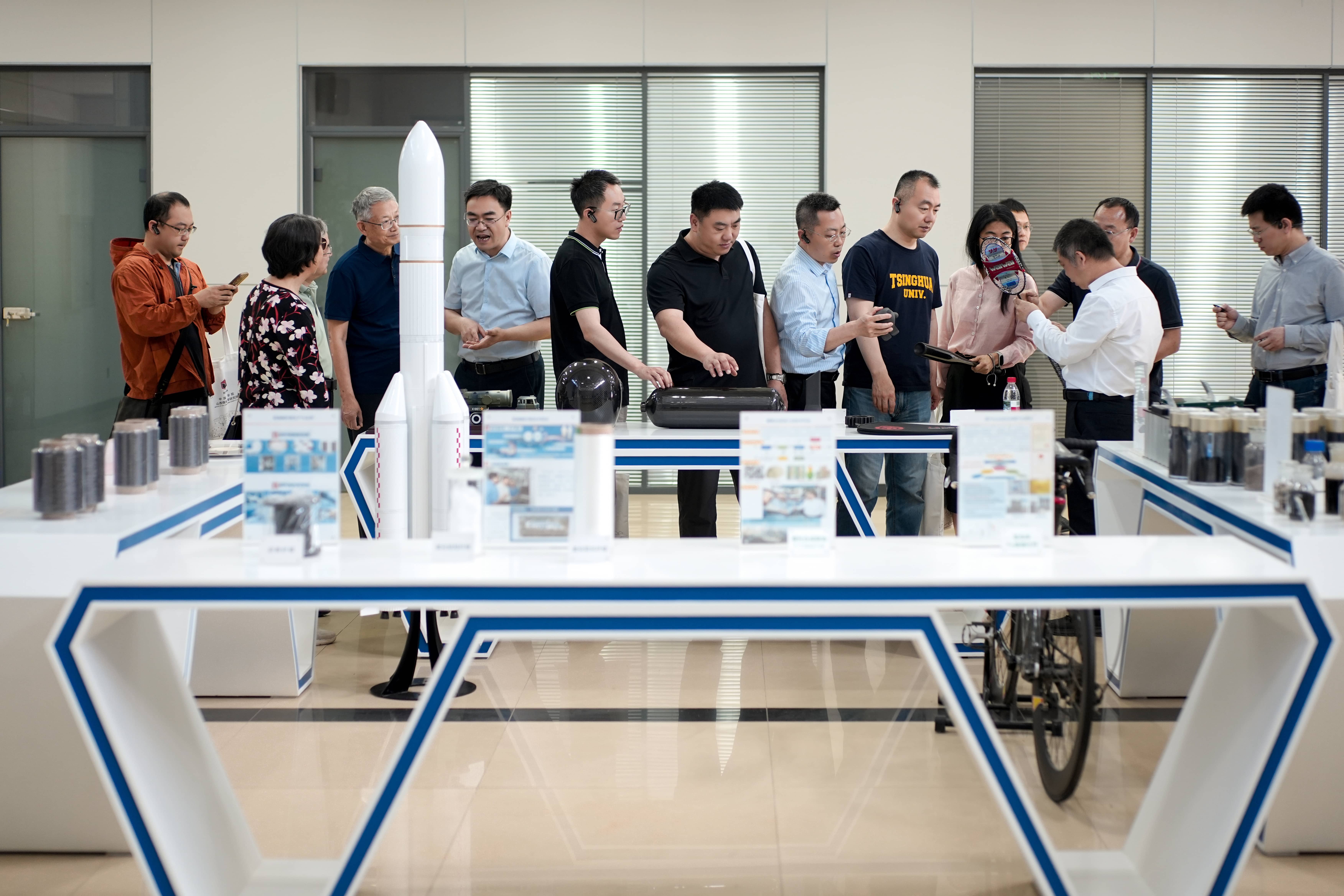 清華大學一行還參觀了小店中試基地、煤炭高效低碳利用全國重點實驗室展廳,詳細了解高性能碳纖維、瀝青基碳纖維、 C1化學物高附加值轉化、二氧化碳捕集轉化、特種石墨、儲能炭材料的指標性能、應用領域和市場前景。