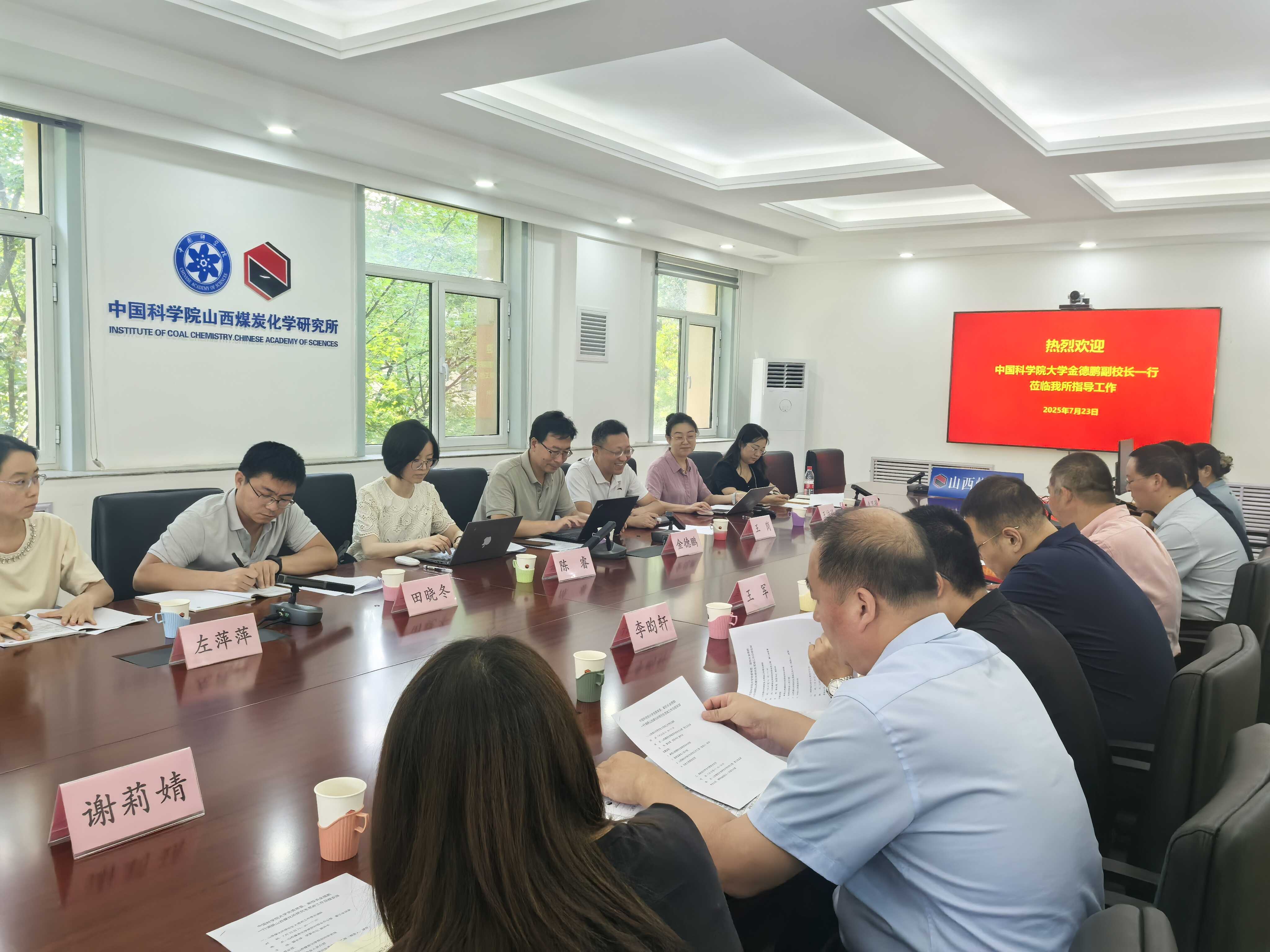 7月23日,中國科學院大學黨委常委、副校長金德鵬一行到山西煤化所調研研究生思政工作。山西煤化所黨委書記、副所長蔡長塔陪同調研。