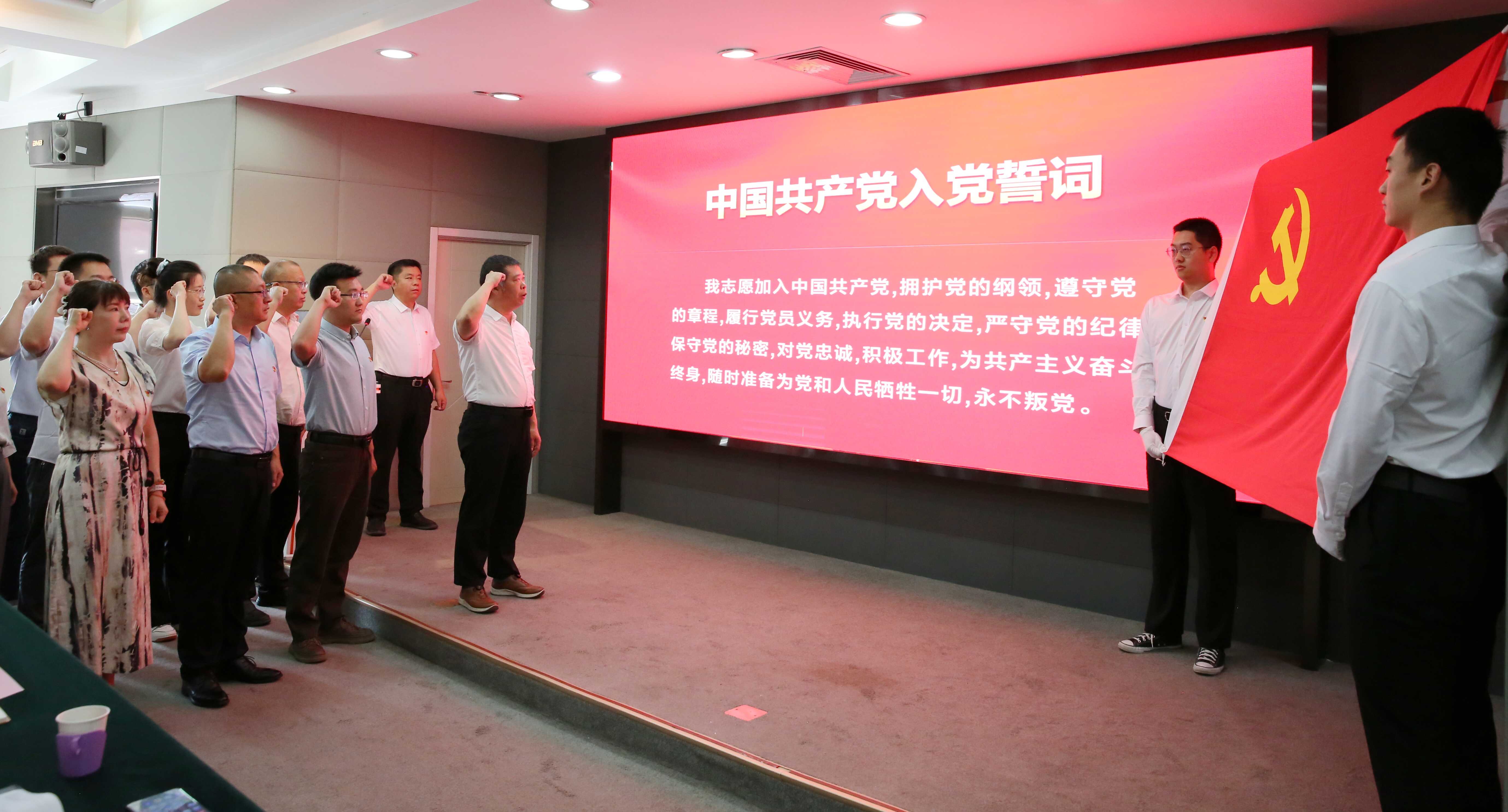 黨委書記蔡長塔帶領全體黨員面對鮮紅黨旗,右手握拳,一字一句許下錚錚誓言。一句誓言、一生作答。鏗鏘有力的誓言在會場回蕩,字字千鈞的承諾直擊心靈。