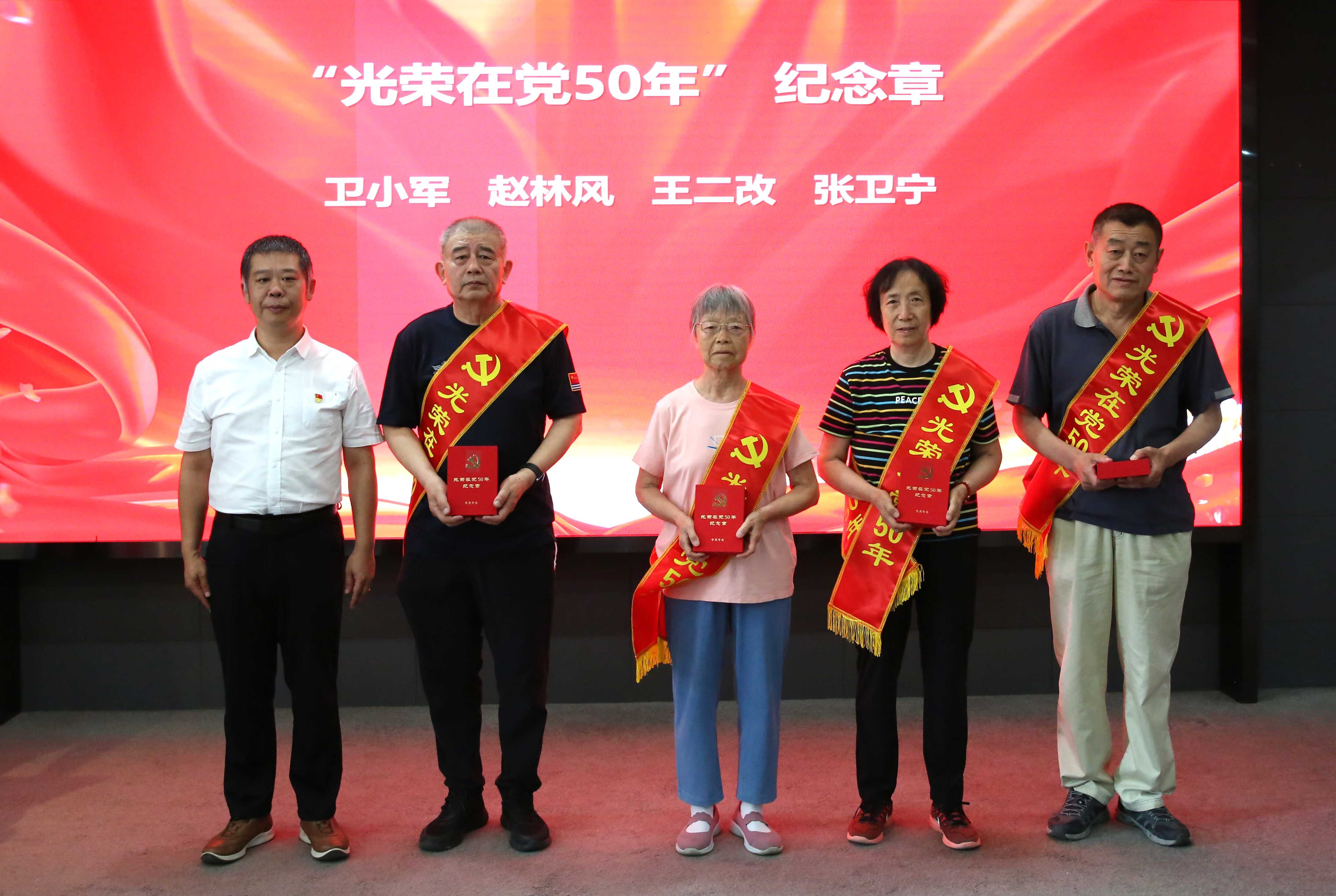 蔡長塔為衛小軍等4位到場的黨齡滿50年老黨員頒發了“光榮在黨50年紀念章”。老黨員們在科研攻關中勇當先鋒,在改革浪潮中敢為人先,在基層崗位上默默耕耘,為我所科技創新事業發展筑牢根基、開辟道路。這枚沉甸甸的紀念章鐫刻著老黨員對黨的無限忠誠,凝結著他們為黨和人民事業奮斗的畢生心血。